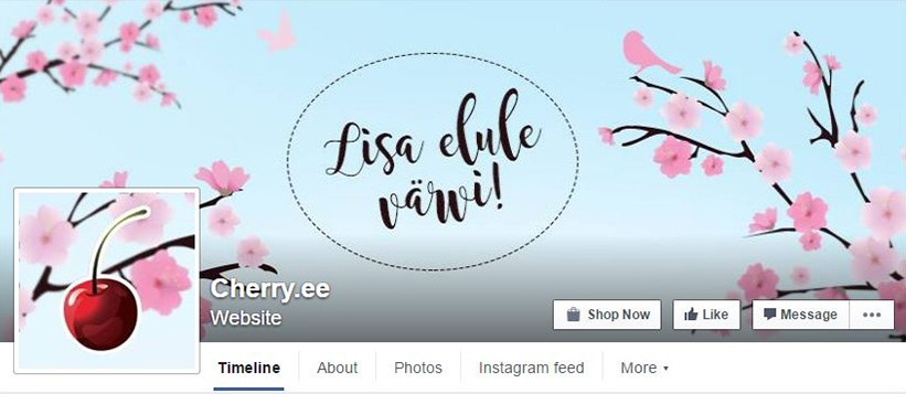 Cherry Facebooki lahendus on äge ja omapärane: profiilipilt on justkui kaanepilt suurendusklaasi all. Lisaks torkab profiilipildil olev kirss helesinise ja -roosa taustal hästi silma ning illustreerib sõnumit: “Lisa elule värvi!”