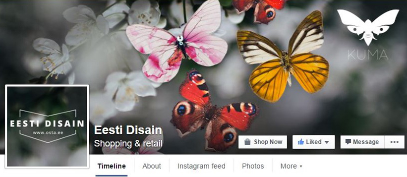 Eesti Disaini profiilipilt on hägustatud nagu ka kaanepildi taust, mis toob kaanepildil olevad värvilised liblikad hästi esile.