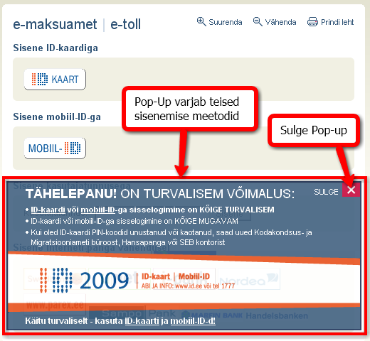 Pop-up’iga käib tugev ID kaardi turundamine.