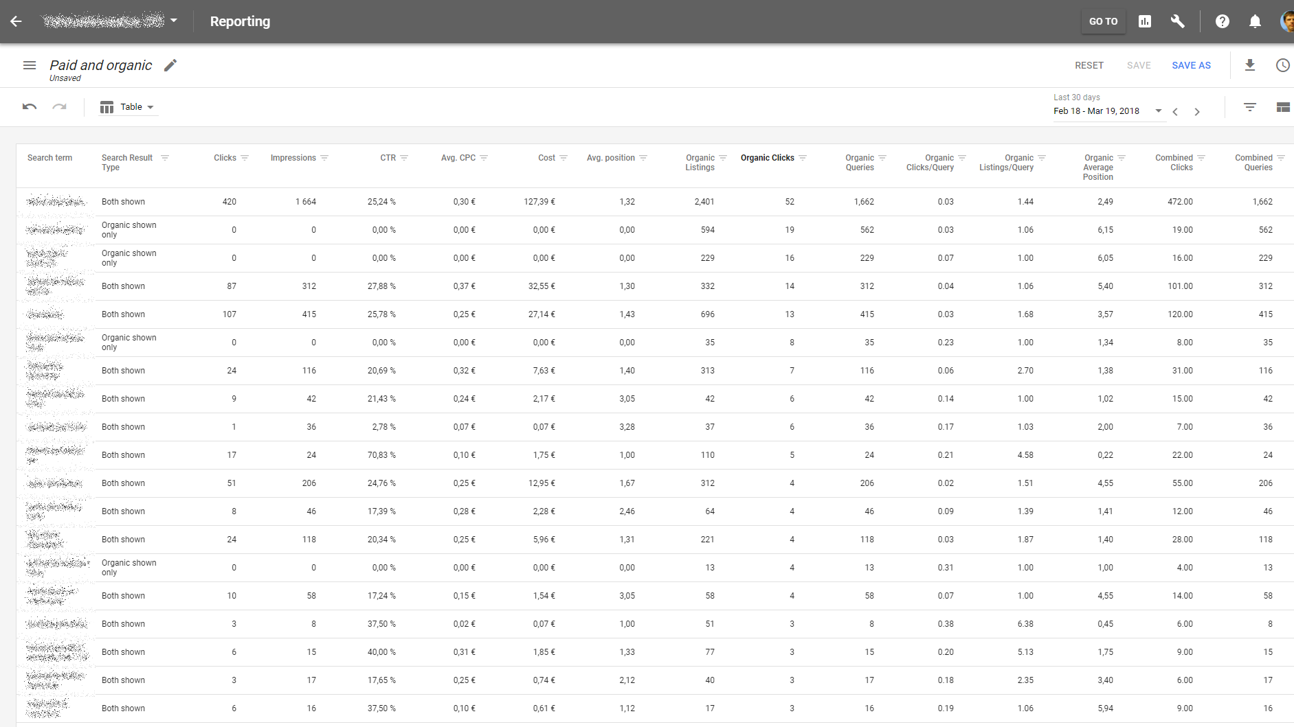 adwords search console paid organic raport