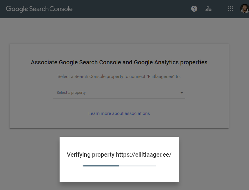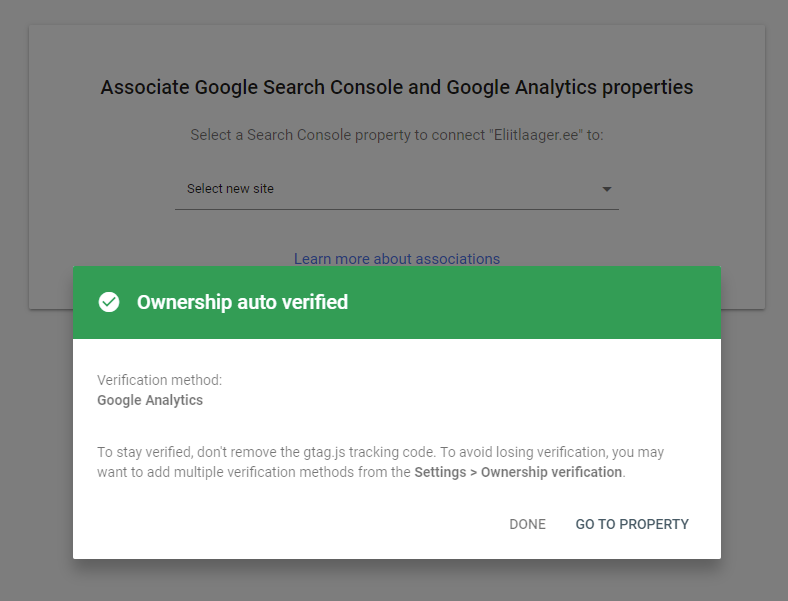Kui kõik edukalt läheb, siis verifitseeritakse su leht läbi Google Analyticsi ja saad vastavasisulise teate.