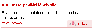 Rate.ee avas uue reklaami tegemise võimaluse kõigile keskkonna kasutajatele. Tegemist on tüüpilise sisupõhise tekstireklaami tüüpi lahendusega, mis kasutusel ka mujal maailmas, millest on juttu olnud