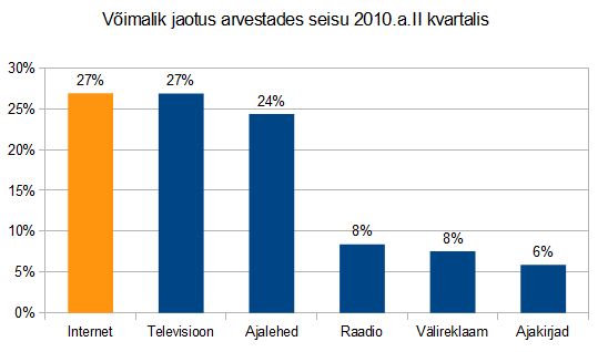 Emori viimased avalikud andmed, Eesti meediaturu 2010. I poolaasta käive ulatus 512 miljoni kroonini, ütlevad, et poole aasta lõikes oli internetireklaam umbes 70 miljoni krooniga kolmandal kohal. See jätab mulje, et Eesti valdavaks meediaks on ajalehed 148 miljoni ja TV 164 miljoni krooniga. Tegelikkus on hoopis teistsugune ja tundub, et osa tibusid on kokku lugemata. […]