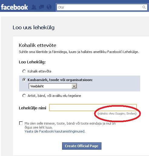 Anu Saagim nimetas Facebook´i kasutajaid invaliidideks ja kirus, et seal tehakse palju temanimelisi lehti. Kuidas Anu Saagim saab libalehti? Sellepärast, et Facebook palub neid teha. Siin on pisikene screenshot. Eestikeelse Facebook´i uue lehe loomisel palutakse teha kasutajal leht, mille nimi võiks olla Anu Saagim või Smilers.